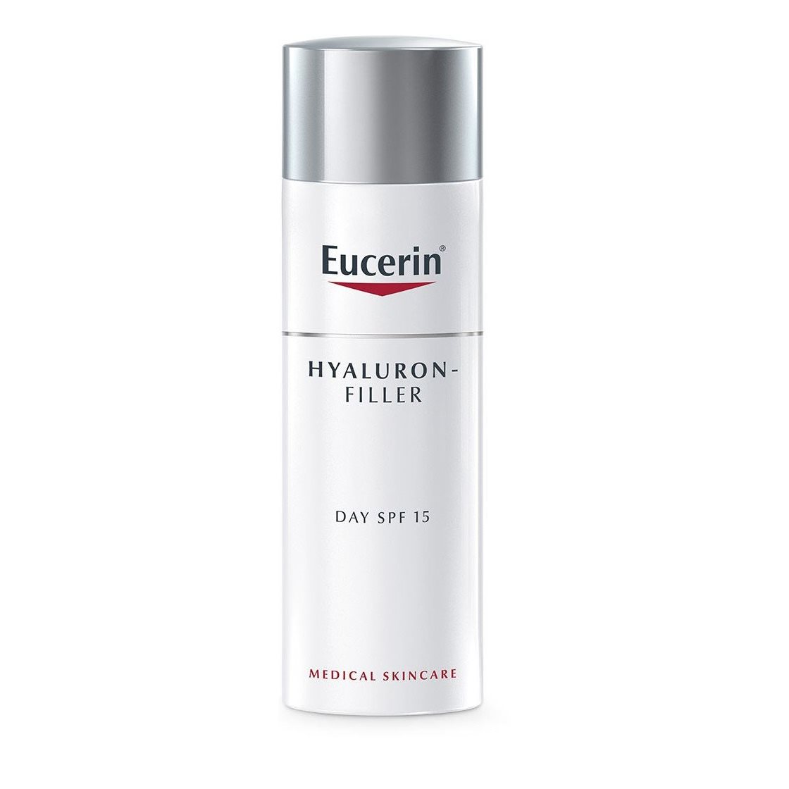 Kõigile nahatüüpidele sobiv Eucerin Hyaluron-Filler päevakreem SPF 30 sisaldab unikaalset kombinatsiooni kõrge- ja madala molekulaarmassiga hüaluroonhappest, mis silub peeneid jooni ja täidab isegi sügavamad kortsud, andes nahale nooruslikuma jume.