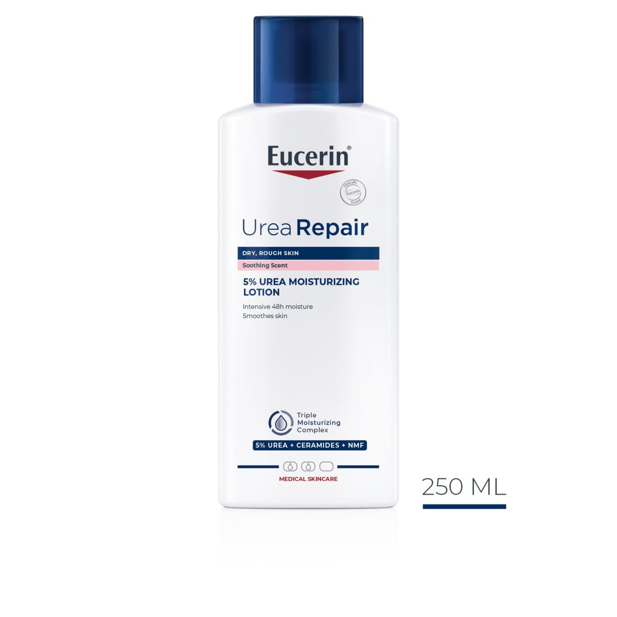 Eucerin UreaRepair PLUS rahustava lõhna ja uureaga (5%) ihupiim sisaldab uureat ja teisi loomulikke niisutustegureid (seovad nahas vett) ning keramiide (parandavad naha kaitsekihti ja vähendavad niiskuskadu). Selline koostis pakub kohest leevendust ning hoiab kuni 48 tunni jooksul ära äärmise nahakuivuse ilmingud (näiteks karedus ja ketendus).